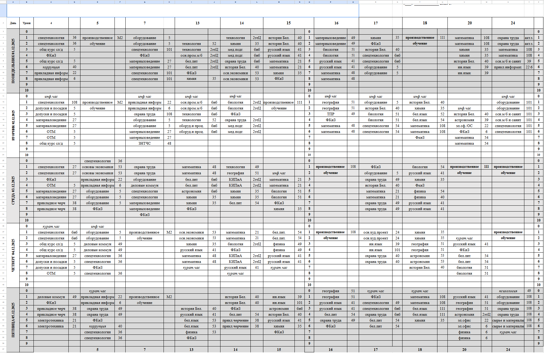 График работы педагогов-психологов и педагога социального в общежитии на II полугодие 2024/2025 учебного года