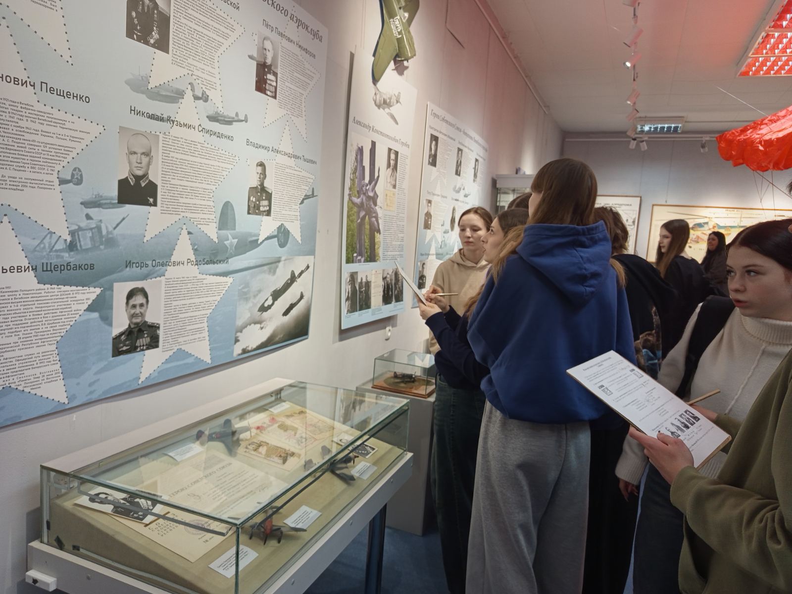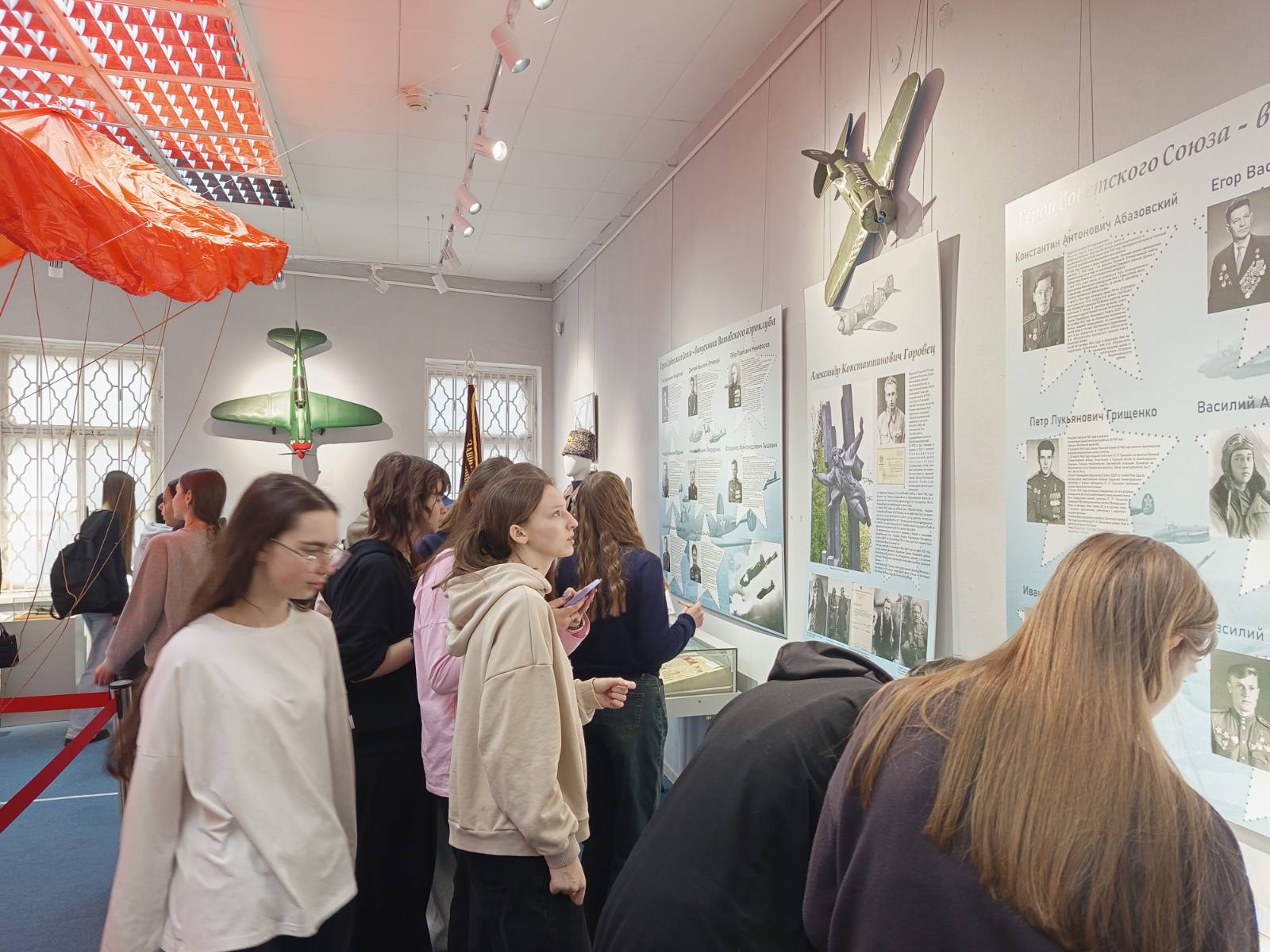 03.03.2026 большая группа учащихся колледжа посетила Витебский областной краеведческий музей, где девушки и парни с интересом ознакомились с экспозицией «В Витебском небе», посвященной 95-летию Витебского аэроклуба ДОСААФ. Выставка рассказала об истории клуба через личные вещи пилотов, модели авиатехники, парашюты и награды, впервые раскрывая уникальный мир местной авиации.