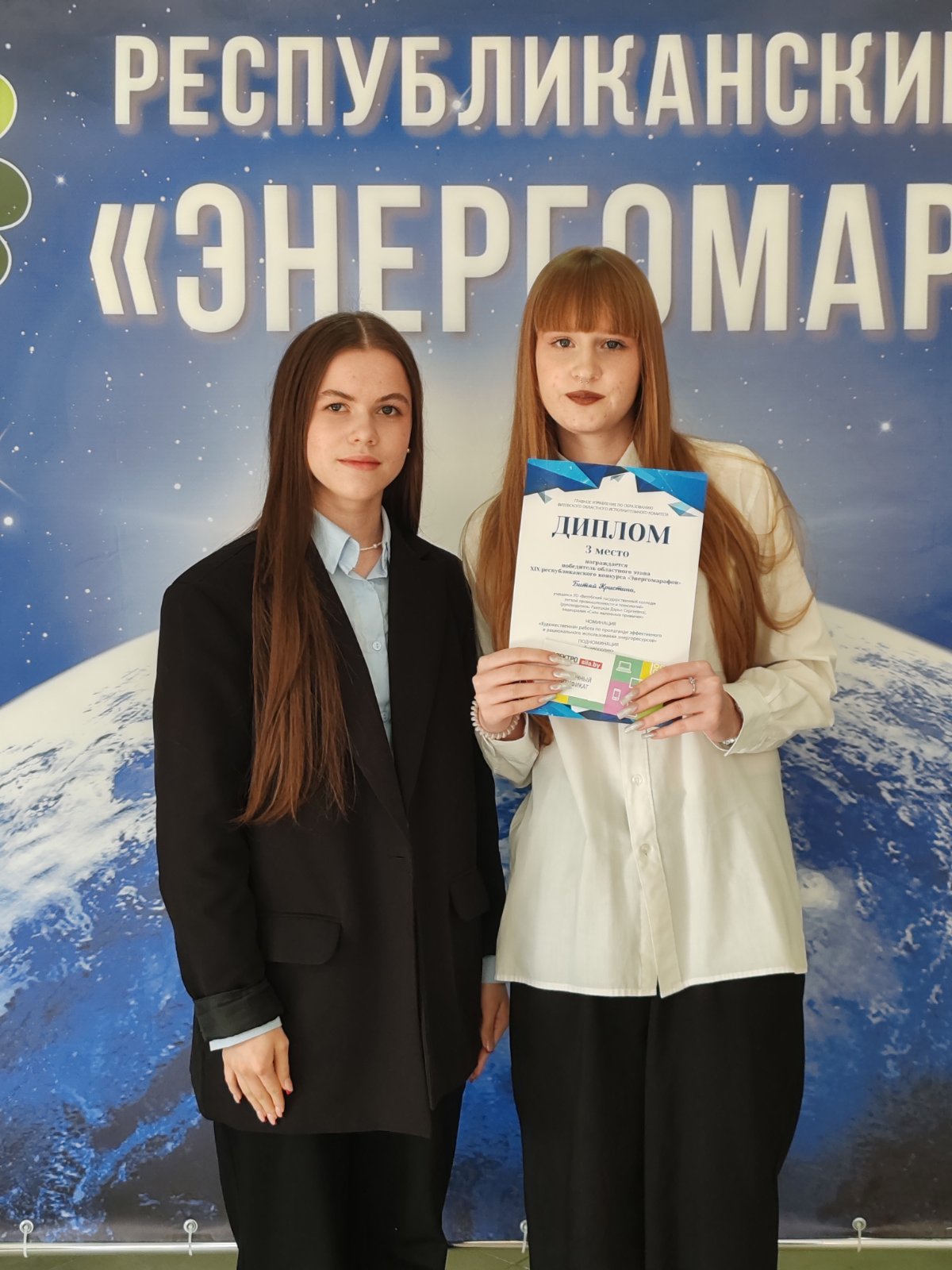 18 марта 2026 года состоялось торжественное награждение призеров областного этапа XIX республиканского конкурса «Энергомарафон». Учащиеся колледжа Кристина Битяй и Ксения Петроневич заняли почетное третье место в номинациях «Видеоролик» и «Плакат». Высокий результат стал возможен благодаря таланту девушек и профессиональной поддержке их руководителей — Ракецкой Дарьи Васильевны и Беленовой Светланы Владимировны. Проекты участниц были посвящены важной теме эффективного энергосбережения. Коллектив колледжа поздравляет победителей и их наставников с заслуженным успехом и желает новых творческих достижений!